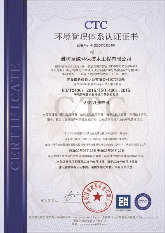 環(huán)境管理體系認(rèn)證證書(shū) |