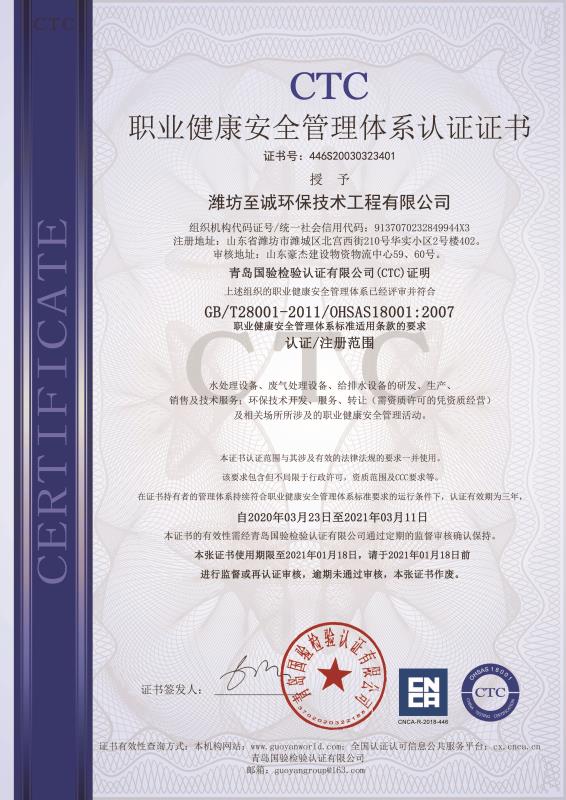 職業(yè)健康安全管理體系認(rèn)證證書(shū) |