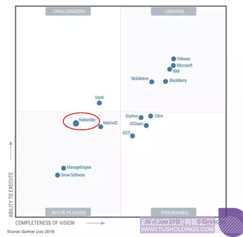 近日, Gartner 發布了 2018 年 UEM 魔力象限《Magic Quadrant for Unified Endpoint Management Tools》,啟迪國信再次榜上有名。這是啟迪國信連續三年進入 Gartner 魔力象限,也是唯一一家進入此領域的中國企業。