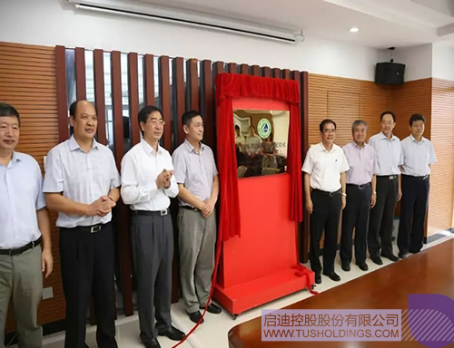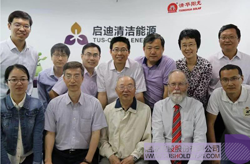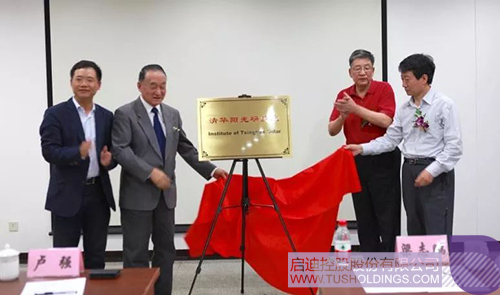 從左至右(時任):啟迪控股總裁王濟武、清華大學教授盧強院士、中國可再生能源學會副理事長朱俊生、國家能源局新能源和可再生能源司副司長梁志鵬為清華陽光研究院成立揭牌