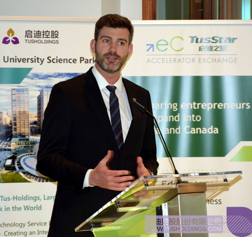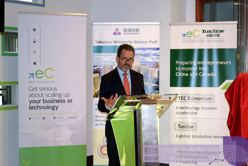 Chris Lumb在致辭中指出,要實現(xiàn)規(guī)模性擴張,阿爾伯塔省必須走向全球。啟迪之星(埃德蒙頓)可以讓加拿大的企業(yè)更有效了解中國和進入中國市場。