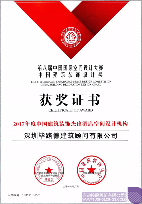 近日,由中國(guó)建筑裝飾協(xié)會(huì)、中共深圳市福田區(qū)委、深圳市福田區(qū)人民政府共同舉辦的第八屆中國(guó)國(guó)際空間設(shè)計(jì)大賽(中國(guó)建筑裝飾設(shè)計(jì)獎(jiǎng))頒獎(jiǎng)盛典在深圳會(huì)展中心盛大舉行。作為酒店設(shè)計(jì)行業(yè)的引領(lǐng)者,啟迪控股成員企業(yè)畢路德被授予“2017年度中國(guó)建筑裝飾杰出酒店空間設(shè)計(jì)機(jī)構(gòu)”。同時(shí),畢路德作品“海境界展廳”斬獲商業(yè)、金融、售樓處空間工程類最高獎(jiǎng)金獎(jiǎng)。