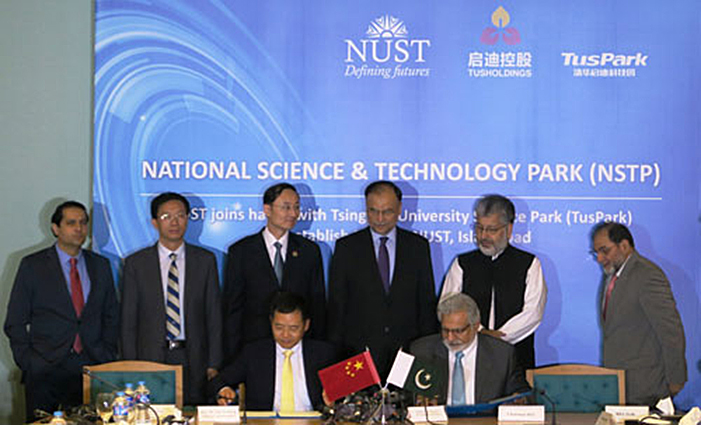 2015年6月27日,啟迪控股與巴基斯坦國立科技大學(xué)(NUST)戰(zhàn)略合作協(xié)議簽字儀式在巴基斯坦首都伊斯蘭堡舉行。巴基斯坦聯(lián)邦計劃和發(fā)展部長Ahsan Iqbal先生,巴基斯坦高等教育委員會主席Mukhtar Ahmed 教授,中國駐巴基斯坦特命全權(quán)大使孫衛(wèi)東先生,NUST校長Asghar先生及其來自學(xué)校和各院系的負(fù)責(zé)人,來自微軟、Oracle、GE、Volvo等跨國公司巴基斯坦公司的CEO和巴基斯坦各主要媒體的代表共計100多人出席了簽字儀式。啟迪控股董事長、時任總裁王濟武先生代表啟迪控股在合作協(xié)議上簽字。