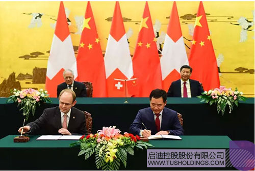 2016年4月8日,在人民大會堂隆重舉行的中瑞兩國系列重要合作簽約儀式上,啟迪控股與瑞士國家創(chuàng)新園簽署了友好合作協(xié)議。中國國家主席習近平,瑞士聯邦主席施耐德?阿曼出席并見證了簽字儀式。啟迪控股時任總裁王濟武,瑞士國家創(chuàng)新園總裁雷蒙德?克龍分別代表雙方在合作協(xié)議上簽字。