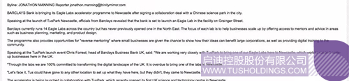 “讓我們迎頭趕上吧,啟迪科技園本來(lái)可以帶著它的技術(shù)落戶(hù)于英國(guó)任何其它地方,但他們沒(méi)有,他們來(lái)到了紐卡斯?fàn)?。?br />