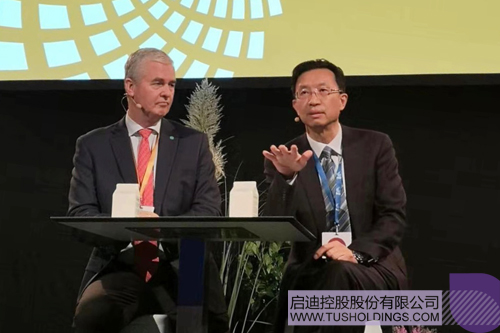 啟迪控股常務副總裁陳鴻波(右)在首屆P4G哥本哈根峰會上發言