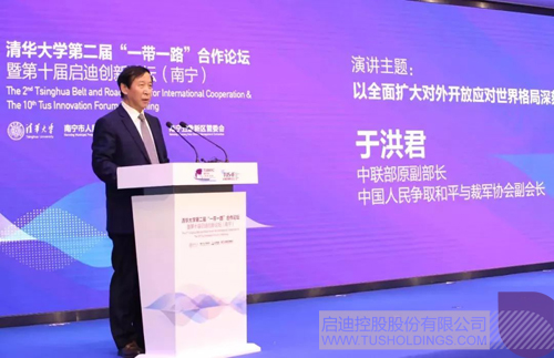 于洪君發表了題為《以全面擴大對外開放應對世界格局深刻變革》的主旨演講。他認為,“一帶一路”建設,開辟出了中國與世界聯動發展、融合發展的嶄新格局,越來越多的國家和國際組織與中國簽署有關“一帶一路”的合作文件,中國與時代同行,世界與中國同在的人類歷史新階段已經到來。
