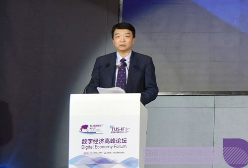 啟迪控股常務副總裁、中關村數字產城聯盟理事長趙東在數字經濟高峰論壇上致辭