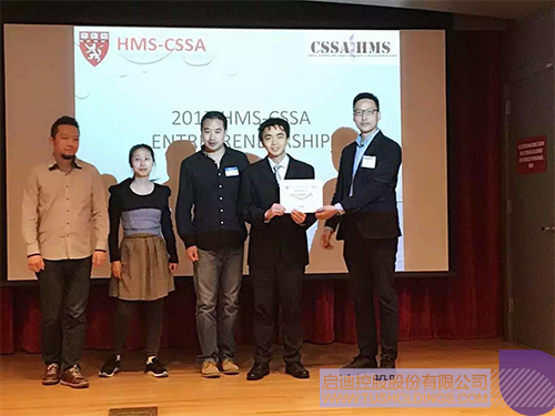 留學新加坡國立大學、英國牛津大學胡博士,從易寒開先生手中接過本次大賽最高獎項,“哈佛醫學院華人啟迪愛創獎”