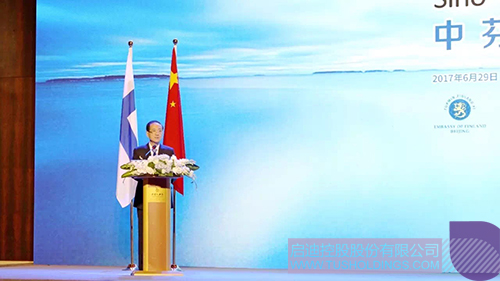 “建交67年以來,友好、互利、合作已經成為中芬關系的主旋律。今年4月,習近平主席在對芬蘭進行國事訪問期間,兩國領導人確立了面向未來的新型合作伙伴關系,譜寫了中芬關系的新篇章,開啟了中芬合作的新政策。”韓啟德副主席回顧了中芬合作成果,認為中芬戰略高度契合,經濟互補優勢更加凸顯,務實合作潛力巨大,前景廣闊。他圍繞“創新”、“綠色”、“可持續”三大關鍵詞,提出雙方未來的主要合作方向,希望雙方政府、企業、企業家攜手為中芬兩國經濟增長作出新的貢獻。