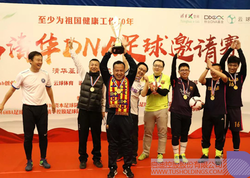 啟迪控股足球隊經過七輪激烈角逐,以七賽六勝一負積18分,進51球,失22球的優秀表現提前一輪鎖定冠軍。隊長張燕東以17枚進球的成績,榮獲本次賽事"最佳射手"。清華DNA足球邀請賽以“清華基因 創投風采”為口號,由清華x-lab創業DNA基金主辦,云球體育與清華大學MBA足球俱樂部協辦,共邀請8支清華系球隊參賽。
